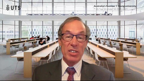 悉尼科技大学副校长Iain Watt(万胤忠)对受邀出席2021级中澳计算机科学与技术国际班新生见面会表示感谢,欣喜看到我校近年来各方面取得的巨大成就,赞赏我校国际班在日常教学和管理,特别是选派优质师资力量加强英语教学的做法。虽然两校合作时间不长,但两校的合作办学非常成功。他还介绍了悉尼科技大学的办学理念、办学目标、综合排名、办学规模和地理位置等方面情况。最后,万副校长表示热切希望两校建立一个合作共赢的关系,为学生提供最优质的教育服务,为学生未来创造有利条件,并欢迎同学们三年后前往悉尼科技大学学习。
