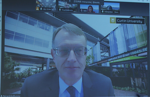 澳大利亚科廷大学副校长Nigel De Bussy 具体介绍了科廷大学的基本情况,对同学们选择金融学专业表示祝贺,并希望两校的中外联合培养项目能够进一步促进双方的合作与交流。待新冠疫情缓和,双方便可从科研合作、教师互访、学生交换等不同领域与层次,开展更为深入的实质性合作。