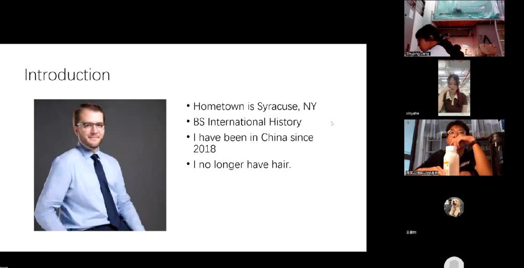 (明胜m88官网 供稿)11月21日,2022级中德“4+1”硕士联合培养项目外教网络直播课顺利开课,授课教师为美籍Patrick Arden Yehlik,讲授课程为《英语视听说》。
