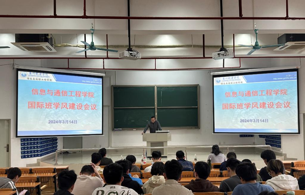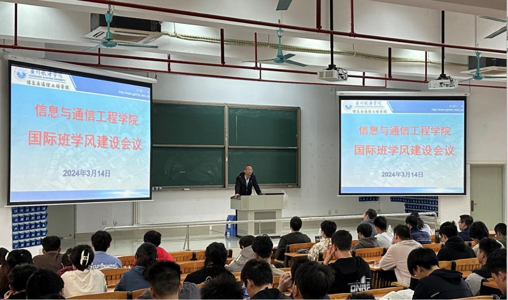 为强化学生纪律意识,进一步加强学风建设,促使学生进一步明确学习目标,增强学习信心,3月15日下午,信通学院组织学院全体国际班学生在建兵北400教室召开学风建设专题会议。学院党委副书记欧俊伟、明胜m88官网副院长刘伟明、国际班辅导员出席本次会议。学院各年级中澳联合培养、中芬合作办学的全体学生参加会议。