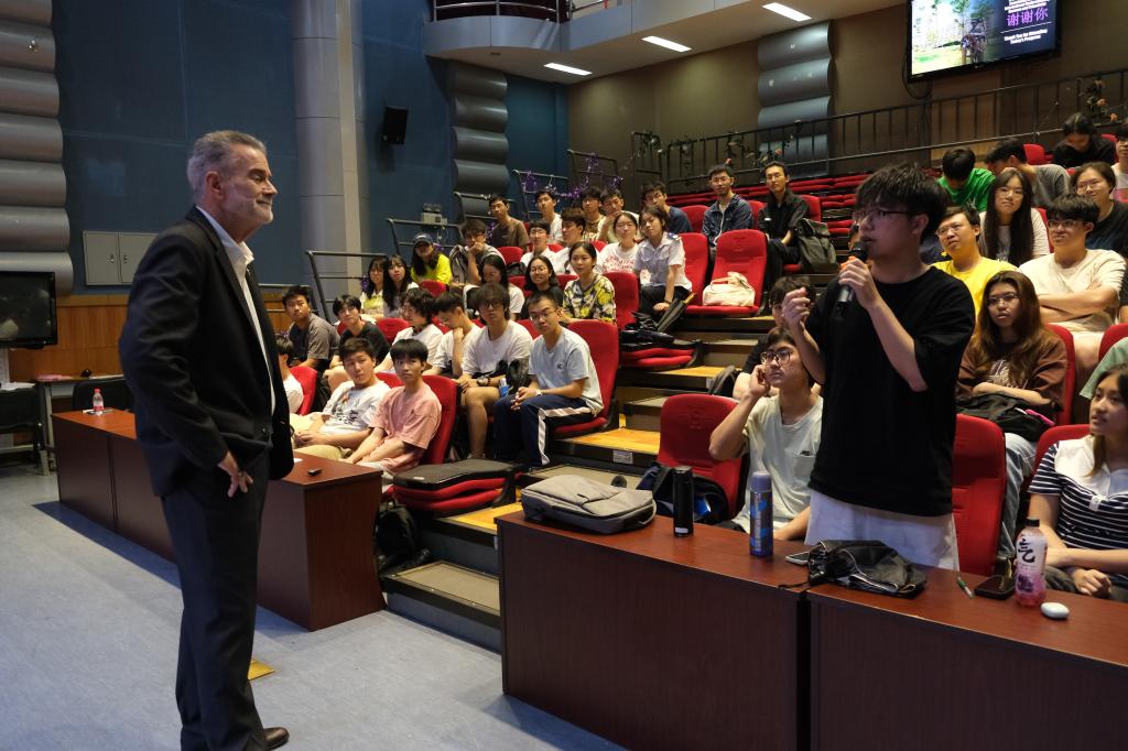 在交流环节中,同学们就美国的历史文化进行提问,Steve Farr先生耐心地一一解答。