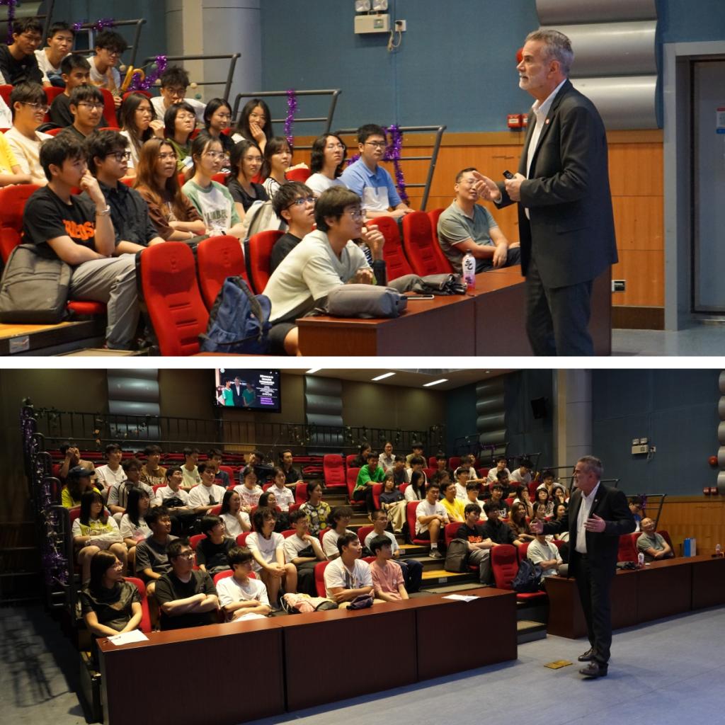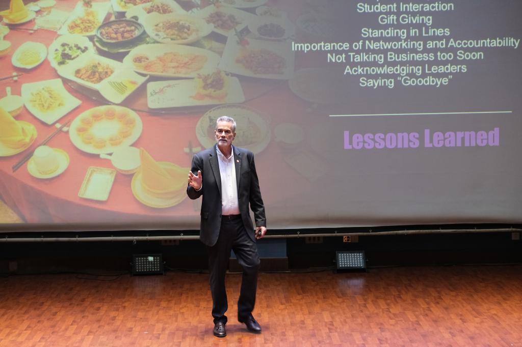 Steve Farr先生结合自己在美国的成长工作经历和在中国的工作经历,深入浅出地为师生们介绍了中美文化之间的差异。他重点围绕思维方式差异、非言语交际差异、逻辑和解决问题方式差异以及商业领域中的文化差异等方面展开讲解,指导师生在跨文化交流中如何更敏锐地捕捉和理解对方的言行举止。同时通过浅显易懂的语言和幽默生动的范例,列举了中美两国在社交活动、节假日习俗、饮食文化、教育等方面的不同,向师生全面展示了不同文化的多样性和独特性。此外,Steve Farr先生还介绍了一些美国常用的口语交流技巧。