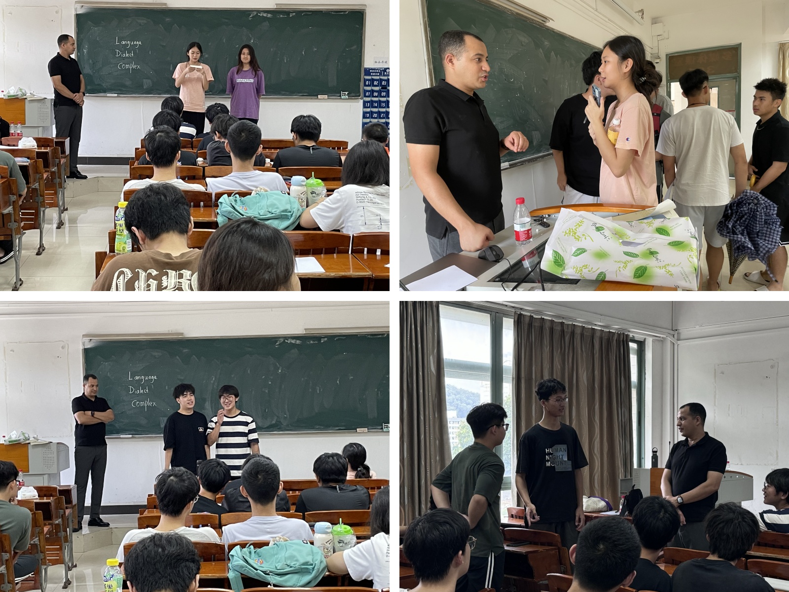 首先,Jawad El Bied老师向同学们分享了提升英语口语的秘诀:“勇于用英语进行交流,通过不断的实践,你们的口语能力将日益增强,表达也将更加流畅”。接着,Jawad El Bied老师引导同学们参与了一系列精心设计的互动小游戏,如“接雪球”、“找真相”、“单词接龙编成短故事”,这些活动旨在激发同学们的参与热情,提升他们的语言运用能力。