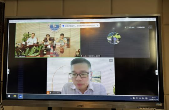 10月23日下午,全球事务办公室在行政楼A楼五楼会议室与马来西亚拉曼大学国际事务处处长Lai Soon Onn举行线上会议,商讨两校合作事宜。全球事务办公室主任李虹;副主任陈松云、黄赞参加了线上会议。