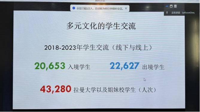 交流中,陈松云简要介绍了我校的办学历史、学科设置、办学特色以及近年来在全球化教育中所取得的显著进步。作为一所以服务国家航运事业和区域经济发展为已任,以工见长,经、管、法、文等多学科协调发展、行业特色鲜明的高校,正大力开拓国际化办学空间,为学生搭建更多的国际化平台,助力学生在国际舞台上展现才华。Lai Soon Onn详细介绍了拉曼大学作为马来西亚知名学府的学术特色和办学成果,以及该校在理工、商业、管理、医学等多个领域的领先优势。