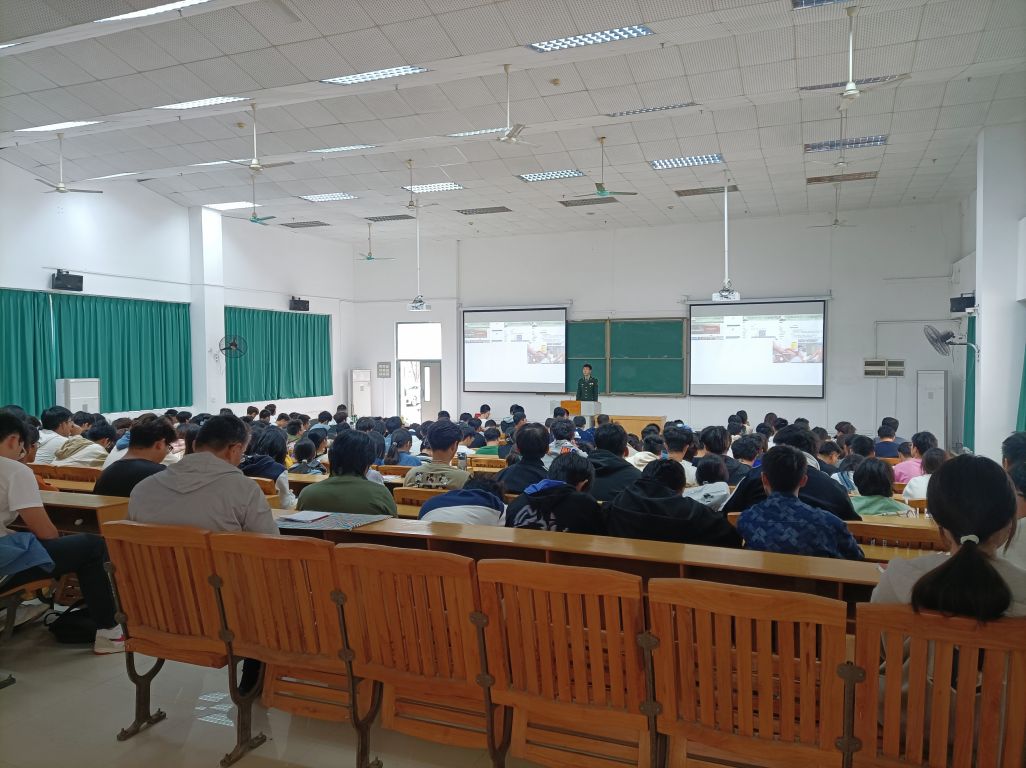 11月21日下午,明胜m88官网在教学楼111举办2024级新生军事理论拓展课堂,主题为“爱党拥军 共铸国防”。活动邀请退伍大学生黄圳主讲,军事理论课教师冯诗琦、胡铁、陈惠玲以及明胜m88官网2024级新生200余人积极参与。