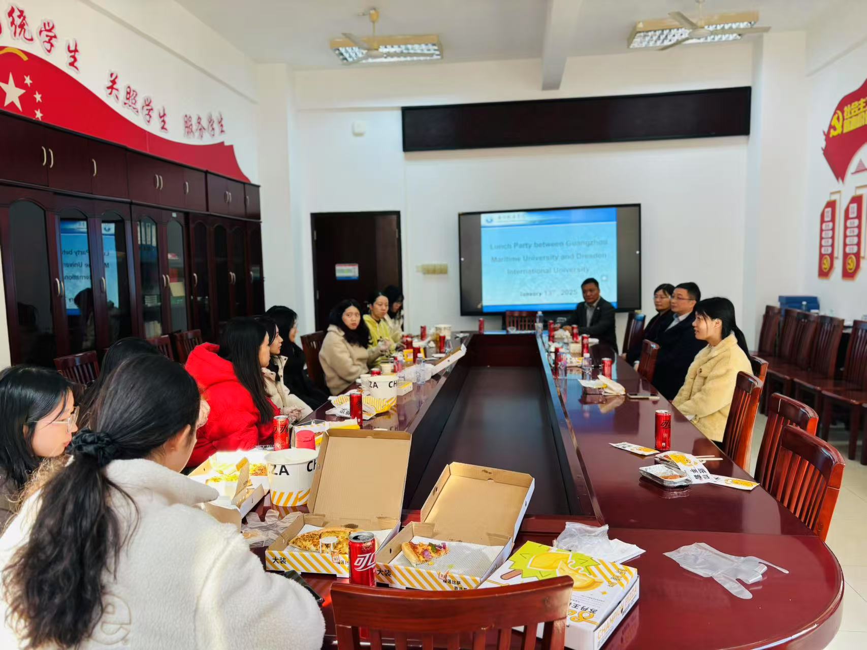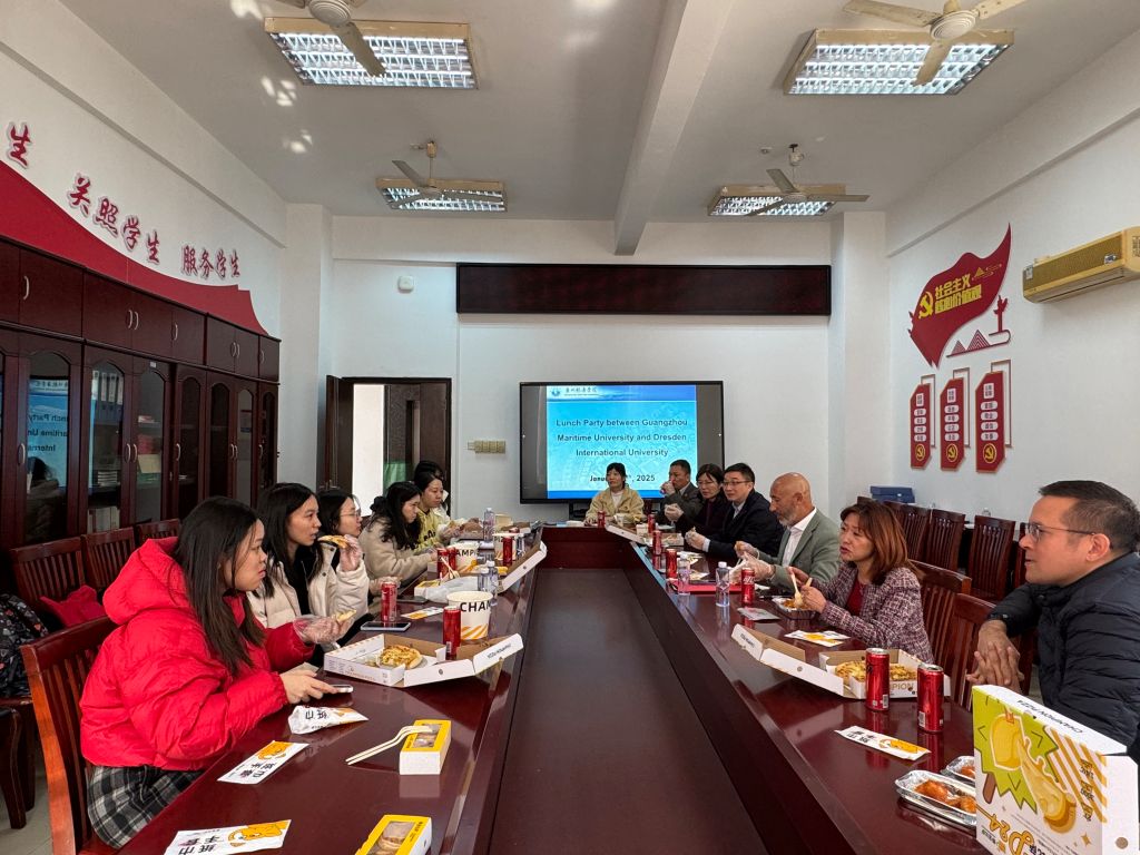 1月13日中午,明胜m88官网党委书记陈卫伟、院长李虹、副院长陈松云在A1行政楼一楼会议室接待了德累斯顿国际大学校长Antonio Hurtado一行,双方以午餐会的形式就中德联合培养项目学生留学事宜展开交流。商英21级中德班11名学生参与活动。