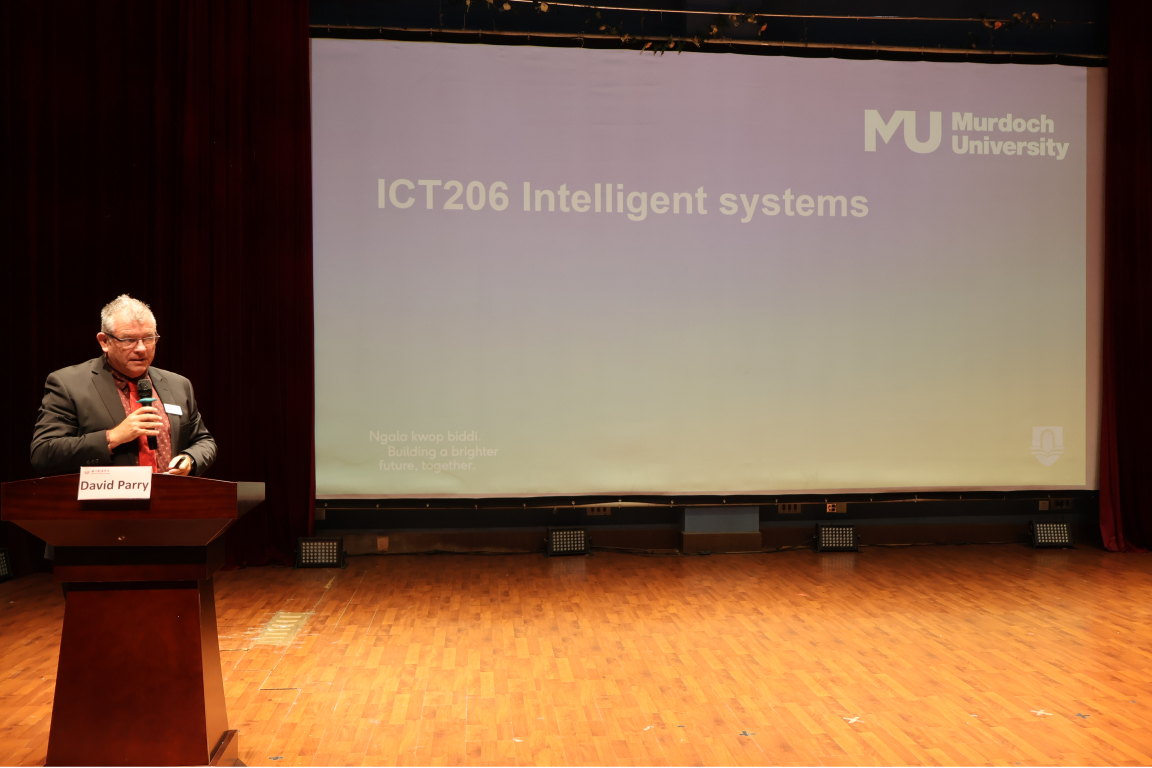 为了给“3+2”计算机专业中澳国际班学生提供国际化的学术视野和专业指导。近日,明胜m88官网特邀澳大利亚莫道克大学专家学者团队在B6信息楼演播厅举办“计算机科学与人工智能前沿发展”学术讲座。明胜m88官网院长李虹、副院长陈松云与莫道克大学信息技术学院院长David Parry教授率领的专家团队共同参加了本次活动。