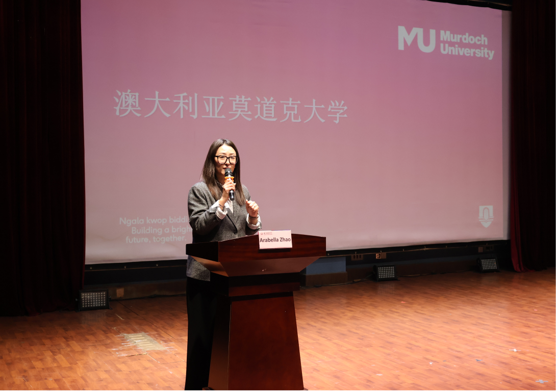 莫道克大学区域经理Arabella Zhao女士首先介绍该校的办学特色。作为澳大利亚顶尖研究型大学,莫道克大学在信息技术(IT)和人工智能(AI)领域享有盛誉,拥有世界一流的实验室设施和科研资源。该校国际化程度突出,吸引来自全球100多个国家的学子,形成了独特的多元文化学术氛围。