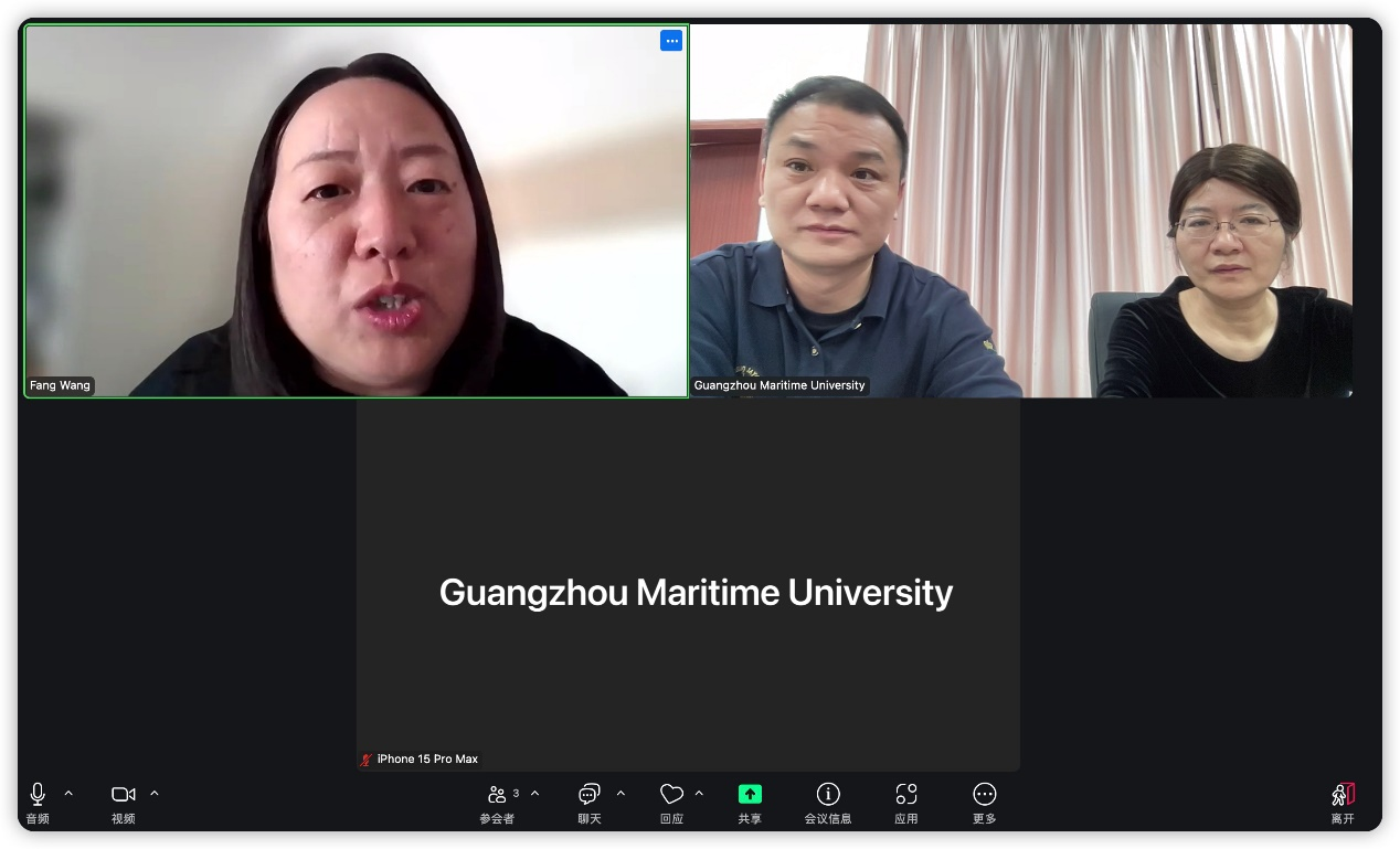 交流会上,双方以“云端对话”方式探讨了口译与AI、笔译与AI、口笔译与AI以及口笔译研究等专业方向联合培养本硕学生的合作模式。萨里大学是英国最早设置翻译研究中心的院校,在翻译技术(自动翻译)领域具有较强的实力,积累了八年为国际海事组织提供翻译支持的经验。结合明胜m88官网校本特色,双方以“海事+人工智能”为突破点,在基于人工智能的海事翻译领域商讨推进“3.5+1”、“4+1”合作模式的可能性。同时,针对学生入学的语言要求,双方对多元化语言支持途径进行了深入磋商。